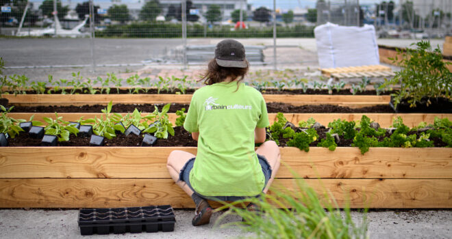 Depuis quelques semaines, l’espace qui accueillait le marché du Vieux-Port de Québec jusqu’à l’été 2019 grouille d’activités. Vingt bacs en bois d’environ 1 m x 15 m ont fait leur apparition sur la dalle de béton. Bienvenue dans l’une des plus grandes fermes maraîchères à vocation sociale et pédagogique au Québec, une nouvelle initiative en agriculture urbaine de l’organisme Les Urbainculteurs.